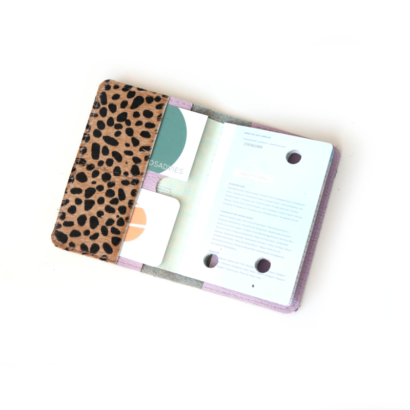 Je kan zelf kiezen wat er in het paspoorthoesje moet passen: 1 of 2 paspoorten of een paspoort met gele boekje. Het hoesje biedt ook nog ruimte aan enkele pasjes.