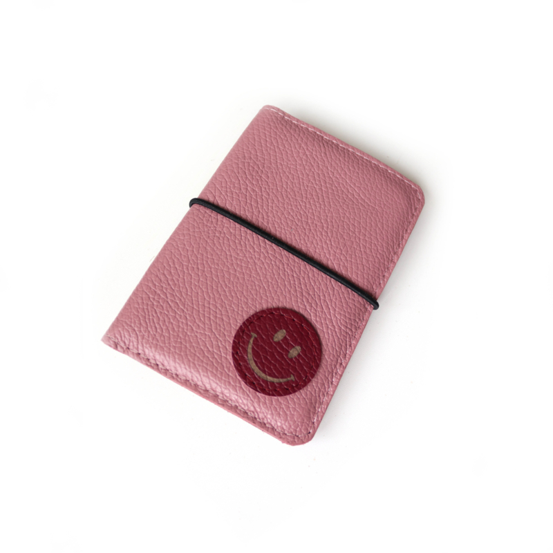 Leren paspoorthoesje waar je direct vrolijk van wordt door de smiley rechts onder in de hoek! Je kan zelf de kleuren samenstellen.