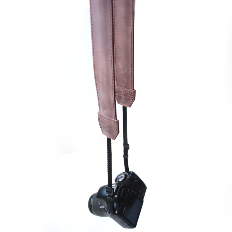 De leren riem is in lengte verstelbaar. Deze cameraband is aan bijna elke camera te bevestigen door de band direct door het haakje van de camera te halen of door het ringetje van je camera.